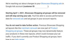 Google will stop serving Showcase Shopping ads and remove Showcase Shopping ad groups beginning on April 1, the company stated in an email to advertisers sent on February 23. After April 1, previous Showcase Shopping ad layouts will become part of Product Shopping ad groups. Advertisers will retain access to performance data for removed ads…